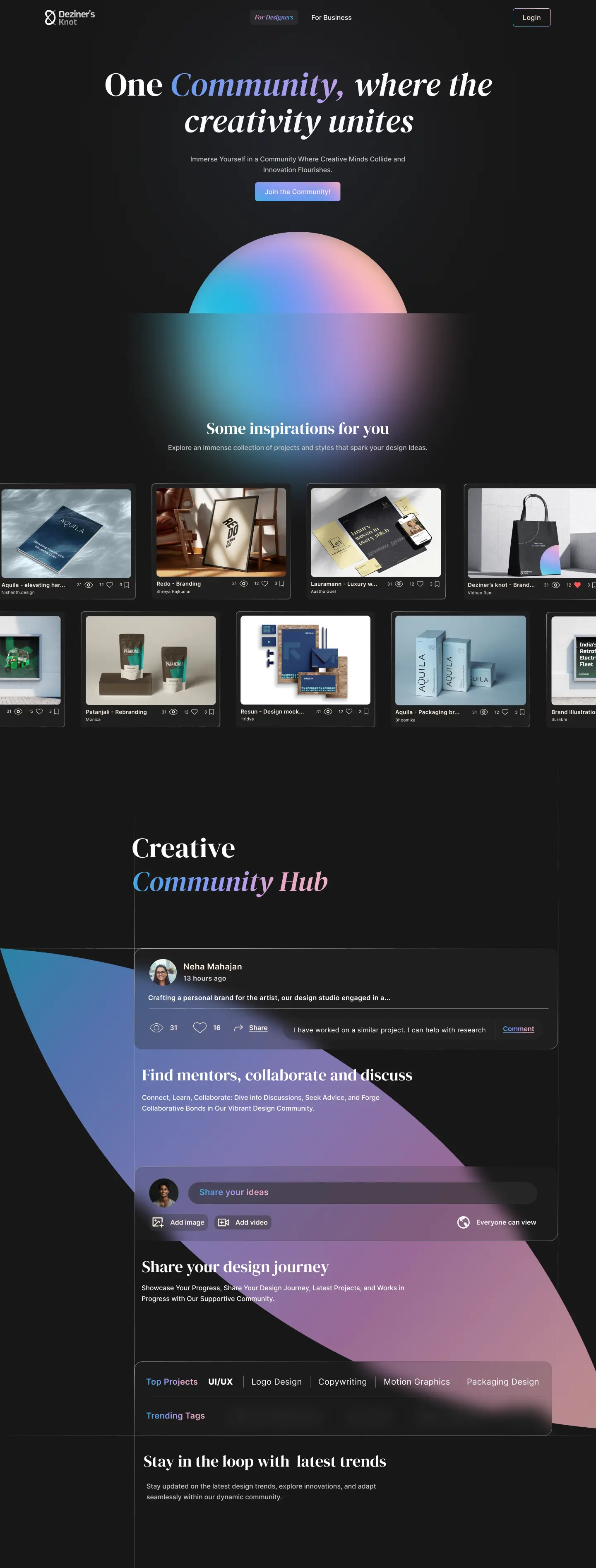 Deziners knot engaged us for a comprehensive overhaul of their current product. As the rest of our design team focused on everything from brand creation to product design, I was tasked with the design and implementation of the website via Webflow.